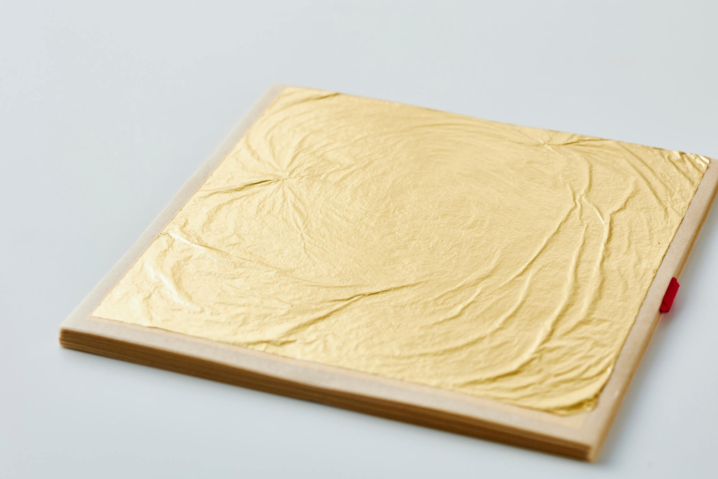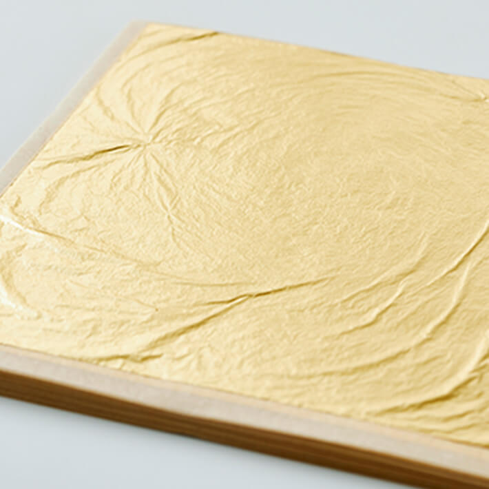 純金の延板が加工され、素材の輝きをそのままに1万分の1ミリにまで均一に伸ばし、広げられる。単純なようで気の遠くなる程のこの仕事は、金箔の歴史を通して磨き抜かれた職人の伝統技によってのみ支えられてきました。